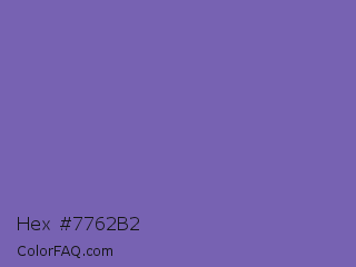 Hex #7762b2 Color is a normal indigo color and the nearest color is Deluge #7563a8. Hex code #7762b2 and RGB value is rgb(119,98,178). In RGB color space, this color is composed of 47% red, 38% green, 70% blue, In CMYK color space, this color is composed of 33% cyan, 45% magenta, 0% yellow , 30% black , In HSL color space, this color has a hue angle of 256° , 34% saturation and 54% lightness.