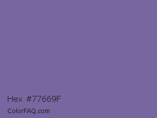 Hex #77669f Color is a normal indigo color and the nearest color is Kimberly #736c9f. Hex code #77669f and RGB value is rgb(119,102,159). In RGB color space, this color is composed of 47% red, 40% green, 62% blue, In CMYK color space, this color is composed of 25% cyan, 36% magenta, 0% yellow , 38% black , In HSL color space, this color has a hue angle of 258° , 23% saturation and 51% lightness.