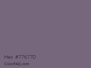 Hex #77677d Color is a normal purple color and the nearest color is Old Lavender #796878. Hex code #77677d and RGB value is rgb(119,103,125). In RGB color space, this color is composed of 47% red, 40% green, 49% blue, In CMYK color space, this color is composed of 5% cyan, 18% magenta, 0% yellow , 51% black , In HSL color space, this color has a hue angle of 284° , 10% saturation and 45% lightness.
