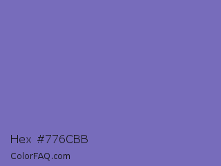 Hex #776cbb Color is a normal indigo color and the nearest color is Toolbox #746cc0. Hex code #776cbb and RGB value is rgb(119,108,187). In RGB color space, this color is composed of 47% red, 42% green, 73% blue, In CMYK color space, this color is composed of 36% cyan, 42% magenta, 0% yellow , 27% black , In HSL color space, this color has a hue angle of 248° , 37% saturation and 58% lightness.
