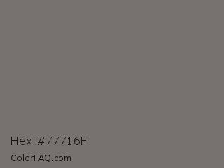 Hex #77716f Color is a normal color and the nearest color is Nickel #727472. Hex code #77716f and RGB value is rgb(119,113,111). In RGB color space, this color is composed of 47% red, 44% green, 44% blue, In CMYK color space, this color is composed of 0% cyan, 5% magenta, 7% yellow , 53% black , In HSL color space, this color has a hue angle of 15° , 3% saturation and 45% lightness.