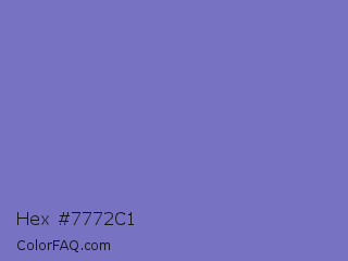 Hex #7772c1 Color is a normal indigo color and the nearest color is Toolbox #746cc0. Hex code #7772c1 and RGB value is rgb(119,114,193). In RGB color space, this color is composed of 47% red, 45% green, 76% blue, In CMYK color space, this color is composed of 38% cyan, 41% magenta, 0% yellow , 24% black , In HSL color space, this color has a hue angle of 244° , 39% saturation and 60% lightness.