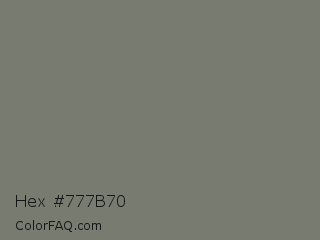 Hex #777b70 Color is a normal green color and the nearest color is Tapa #7b7874. Hex code #777b70 and RGB value is rgb(119,123,112). In RGB color space, this color is composed of 47% red, 48% green, 44% blue, In CMYK color space, this color is composed of 3% cyan, 0% magenta, 9% yellow , 52% black , In HSL color space, this color has a hue angle of 82° , 5% saturation and 46% lightness.