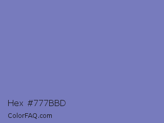 Hex #777bbd Color is a normal blue color and the nearest color is Wild Blue Yonder #7a89b8. Hex code #777bbd and RGB value is rgb(119,123,189). In RGB color space, this color is composed of 47% red, 48% green, 74% blue, In CMYK color space, this color is composed of 37% cyan, 35% magenta, 0% yellow , 26% black , In HSL color space, this color has a hue angle of 237° , 35% saturation and 60% lightness.