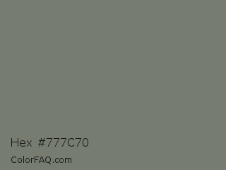 Hex #777c70 Color is a normal green color and the nearest color is Tapa #7b7874. Hex code #777c70 and RGB value is rgb(119,124,112). In RGB color space, this color is composed of 47% red, 49% green, 44% blue, In CMYK color space, this color is composed of 4% cyan, 0% magenta, 10% yellow , 51% black , In HSL color space, this color has a hue angle of 85° , 5% saturation and 46% lightness.