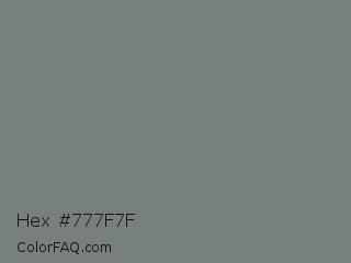 Hex #777f7f Color is a normal cyan color and the nearest color is Rolling Stone #747d83. Hex code #777f7f and RGB value is rgb(119,127,127). In RGB color space, this color is composed of 47% red, 50% green, 50% blue, In CMYK color space, this color is composed of 6% cyan, 0% magenta, 0% yellow , 50% black , In HSL color space, this color has a hue angle of 180° , 3% saturation and 48% lightness.