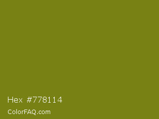 Hex #778114 Color is a dark yellow color and the nearest color is Trendy Green #7c881a. Hex code #778114 and RGB value is rgb(119,129,20). In RGB color space, this color is composed of 47% red, 51% green, 8% blue, In CMYK color space, this color is composed of 8% cyan, 0% magenta, 84% yellow , 49% black , In HSL color space, this color has a hue angle of 66° , 73% saturation and 29% lightness.