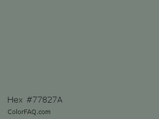 Hex #77827a Color is a normal green color and the nearest color is Smoke #738276. Hex code #77827a and RGB value is rgb(119,130,122). In RGB color space, this color is composed of 47% red, 51% green, 48% blue, In CMYK color space, this color is composed of 8% cyan, 0% magenta, 6% yellow , 49% black , In HSL color space, this color has a hue angle of 136° , 4% saturation and 49% lightness.