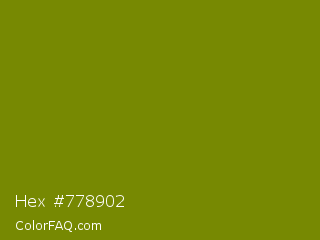 Hex #778902 Color is a dark yellow color and the nearest color is Olive #808000. Hex code #778902 and RGB value is rgb(119,137,2). In RGB color space, this color is composed of 47% red, 54% green, 1% blue, In CMYK color space, this color is composed of 13% cyan, 0% magenta, 99% yellow , 46% black , In HSL color space, this color has a hue angle of 68° , 97% saturation and 27% lightness.