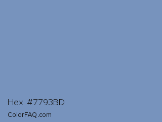 Hex #7793bd Color is a normal blue color and the nearest color is Ship Cove #788bba. Hex code #7793bd and RGB value is rgb(119,147,189). In RGB color space, this color is composed of 47% red, 58% green, 74% blue, In CMYK color space, this color is composed of 37% cyan, 22% magenta, 0% yellow , 26% black , In HSL color space, this color has a hue angle of 216° , 35% saturation and 60% lightness.