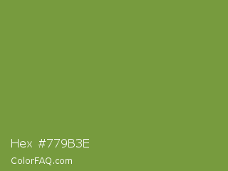 Hex #779b3e Color is a normal green color and the nearest color is Palm Leaf #6f9940. Hex code #779b3e and RGB value is rgb(119,155,62). In RGB color space, this color is composed of 47% red, 61% green, 24% blue, In CMYK color space, this color is composed of 23% cyan, 0% magenta, 60% yellow , 39% black , In HSL color space, this color has a hue angle of 83° , 43% saturation and 43% lightness.