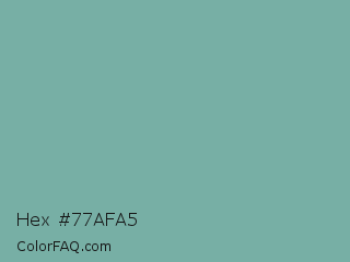 Hex #77afa5 Color is a normal cyan color and the nearest color is Acapulco #7cb0a1. Hex code #77afa5 and RGB value is rgb(119,175,165). In RGB color space, this color is composed of 47% red, 69% green, 65% blue, In CMYK color space, this color is composed of 32% cyan, 0% magenta, 6% yellow , 31% black , In HSL color space, this color has a hue angle of 169° , 26% saturation and 58% lightness.