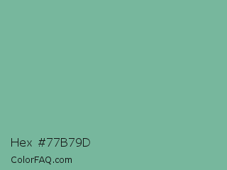 Hex #77b79d Color is a normal green color and the nearest color is Acapulco #7cb0a1. Hex code #77b79d and RGB value is rgb(119,183,157). In RGB color space, this color is composed of 47% red, 72% green, 62% blue, In CMYK color space, this color is composed of 35% cyan, 0% magenta, 14% yellow , 28% black , In HSL color space, this color has a hue angle of 156° , 31% saturation and 59% lightness.