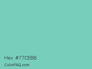Hex #77cebb Color is a light cyan color and the nearest color is Downy #6fd0c5. Hex code #77cebb and RGB value is rgb(119,206,187). In RGB color space, this color is composed of 47% red, 81% green, 73% blue, In CMYK color space, this color is composed of 42% cyan, 0% magenta, 9% yellow , 19% black , In HSL color space, this color has a hue angle of 167° , 47% saturation and 64% lightness.