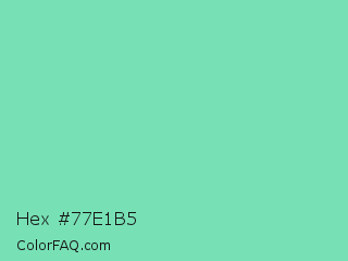Hex #77e1b5 Color is a light green color and the nearest color is Bermuda #7dd8c6. Hex code #77e1b5 and RGB value is rgb(119,225,181). In RGB color space, this color is composed of 47% red, 88% green, 71% blue, In CMYK color space, this color is composed of 47% cyan, 0% magenta, 20% yellow , 12% black , In HSL color space, this color has a hue angle of 155° , 64% saturation and 67% lightness.