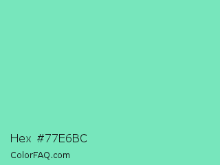Hex #77e6bc Color is a light green color and the nearest color is Bermuda #7dd8c6. Hex code #77e6bc and RGB value is rgb(119,230,188). In RGB color space, this color is composed of 47% red, 90% green, 74% blue, In CMYK color space, this color is composed of 48% cyan, 0% magenta, 18% yellow , 10% black , In HSL color space, this color has a hue angle of 157° , 69% saturation and 68% lightness.