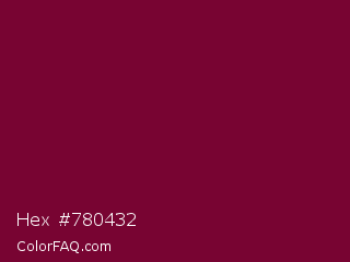 Hex #780432 Color is a dark rose color and the nearest color is Siren #7a013a. Hex code #780432 and RGB value is rgb(120,4,50). In RGB color space, this color is composed of 47% red, 2% green, 20% blue, In CMYK color space, this color is composed of 0% cyan, 97% magenta, 58% yellow , 53% black , In HSL color space, this color has a hue angle of 336° , 94% saturation and 24% lightness.