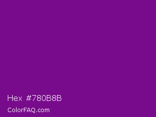 Hex #780b8b Color is a dark purple color and the nearest color is Patriarch #800080. Hex code #780b8b and RGB value is rgb(120,11,139). In RGB color space, this color is composed of 47% red, 4% green, 55% blue, In CMYK color space, this color is composed of 14% cyan, 92% magenta, 0% yellow , 45% black , In HSL color space, this color has a hue angle of 291° , 85% saturation and 29% lightness.