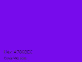Hex #780bec Color is a normal violet color and the nearest color is Violet Color Wheel #7f00ff. Hex code #780bec and RGB value is rgb(120,11,236). In RGB color space, this color is composed of 47% red, 4% green, 93% blue, In CMYK color space, this color is composed of 49% cyan, 95% magenta, 0% yellow , 7% black , In HSL color space, this color has a hue angle of 269° , 91% saturation and 48% lightness.