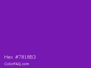 Hex #7818b3 Color is a normal purple color and the nearest color is Grape #6f2da8. Hex code #7818b3 and RGB value is rgb(120,24,179). In RGB color space, this color is composed of 47% red, 9% green, 70% blue, In CMYK color space, this color is composed of 33% cyan, 87% magenta, 0% yellow , 30% black , In HSL color space, this color has a hue angle of 277° , 76% saturation and 40% lightness.