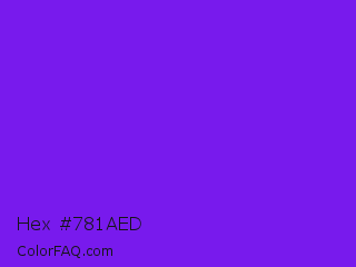 Hex #781aed Color is a normal violet color and the nearest color is Blue Violet #8a2be2. Hex code #781aed and RGB value is rgb(120,26,237). In RGB color space, this color is composed of 47% red, 10% green, 93% blue, In CMYK color space, this color is composed of 49% cyan, 89% magenta, 0% yellow , 7% black , In HSL color space, this color has a hue angle of 267° , 85% saturation and 52% lightness.