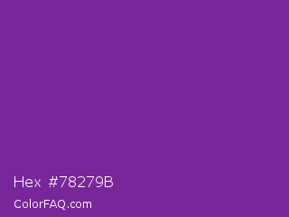 Hex #78279b Color is a normal purple color and the nearest color is Seance #731e8f. Hex code #78279b and RGB value is rgb(120,39,155). In RGB color space, this color is composed of 47% red, 15% green, 61% blue, In CMYK color space, this color is composed of 23% cyan, 75% magenta, 0% yellow , 39% black , In HSL color space, this color has a hue angle of 282° , 60% saturation and 38% lightness.