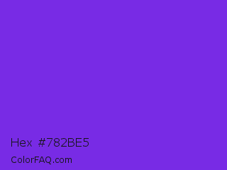 Hex #782be5 Color is a normal violet color and the nearest color is Blue Violet #8a2be2. Hex code #782be5 and RGB value is rgb(120,43,229). In RGB color space, this color is composed of 47% red, 17% green, 90% blue, In CMYK color space, this color is composed of 48% cyan, 81% magenta, 0% yellow , 10% black , In HSL color space, this color has a hue angle of 265° , 78% saturation and 53% lightness.