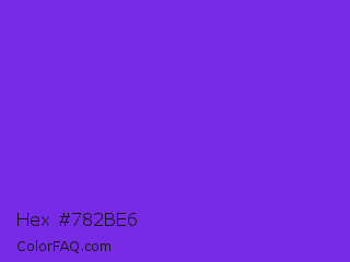 Hex #782be6 Color is a normal violet color and the nearest color is Blue Violet #8a2be2. Hex code #782be6 and RGB value is rgb(120,43,230). In RGB color space, this color is composed of 47% red, 17% green, 90% blue, In CMYK color space, this color is composed of 48% cyan, 81% magenta, 0% yellow , 10% black , In HSL color space, this color has a hue angle of 265° , 79% saturation and 54% lightness.