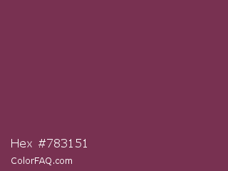 Hex #783151 Color is a normal rose color and the nearest color is Cosmic #76395d. Hex code #783151 and RGB value is rgb(120,49,81). In RGB color space, this color is composed of 47% red, 19% green, 32% blue, In CMYK color space, this color is composed of 0% cyan, 59% magenta, 33% yellow , 53% black , In HSL color space, this color has a hue angle of 333° , 42% saturation and 33% lightness.