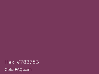 Hex #78375b Color is a normal magenta color and the nearest color is Cosmic #76395d. Hex code #78375b and RGB value is rgb(120,55,91). In RGB color space, this color is composed of 47% red, 22% green, 36% blue, In CMYK color space, this color is composed of 0% cyan, 54% magenta, 24% yellow , 53% black , In HSL color space, this color has a hue angle of 327° , 37% saturation and 34% lightness.