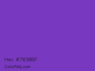Hex #7838bf Color is a normal violet color and the nearest color is Purple Heart Crayola #652dc1. Hex code #7838bf and RGB value is rgb(120,56,191). In RGB color space, this color is composed of 47% red, 22% green, 75% blue, In CMYK color space, this color is composed of 37% cyan, 71% magenta, 0% yellow , 25% black , In HSL color space, this color has a hue angle of 268° , 55% saturation and 48% lightness.