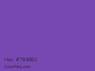 Hex #7848b2 Color is a normal violet color and the nearest color is Studio #714ab2. Hex code #7848b2 and RGB value is rgb(120,72,178). In RGB color space, this color is composed of 47% red, 28% green, 70% blue, In CMYK color space, this color is composed of 33% cyan, 60% magenta, 0% yellow , 30% black , In HSL color space, this color has a hue angle of 267° , 42% saturation and 49% lightness.