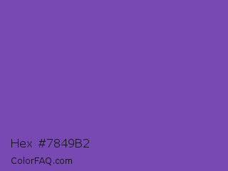 Hex #7849b2 Color is a normal violet color and the nearest color is Studio #714ab2. Hex code #7849b2 and RGB value is rgb(120,73,178). In RGB color space, this color is composed of 47% red, 29% green, 70% blue, In CMYK color space, this color is composed of 33% cyan, 59% magenta, 0% yellow , 30% black , In HSL color space, this color has a hue angle of 267° , 42% saturation and 49% lightness.