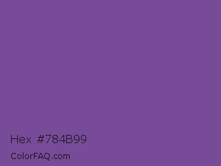Hex #784b99 Color is a normal purple color and the nearest color is Dark Lavender #734f96. Hex code #784b99 and RGB value is rgb(120,75,153). In RGB color space, this color is composed of 47% red, 29% green, 60% blue, In CMYK color space, this color is composed of 22% cyan, 51% magenta, 0% yellow , 40% black , In HSL color space, this color has a hue angle of 275° , 34% saturation and 45% lightness.