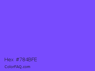 Hex #784bfe Color is a light indigo color and the nearest color is Very Light Blue #6666ff. Hex code #784bfe and RGB value is rgb(120,75,254). In RGB color space, this color is composed of 47% red, 29% green, 100% blue, In CMYK color space, this color is composed of 53% cyan, 70% magenta, 0% yellow , 0% black , In HSL color space, this color has a hue angle of 255° , 99% saturation and 65% lightness.