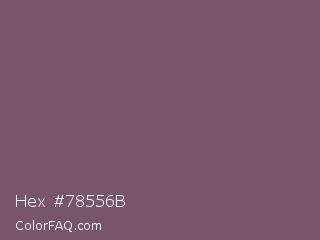 Hex #78556b Color is a normal magenta color and the nearest color is Falcon #7f626d. Hex code #78556b and RGB value is rgb(120,85,107). In RGB color space, this color is composed of 47% red, 33% green, 42% blue, In CMYK color space, this color is composed of 0% cyan, 29% magenta, 11% yellow , 53% black , In HSL color space, this color has a hue angle of 322° , 17% saturation and 40% lightness.