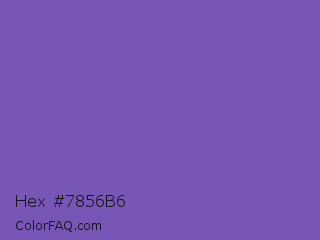 Hex #7856b6 Color is a normal violet color and the nearest color is Fuchsia Blue #7a58c1. Hex code #7856b6 and RGB value is rgb(120,86,182). In RGB color space, this color is composed of 47% red, 34% green, 71% blue, In CMYK color space, this color is composed of 34% cyan, 53% magenta, 0% yellow , 29% black , In HSL color space, this color has a hue angle of 261° , 40% saturation and 53% lightness.