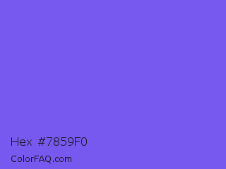 Hex #7859f0 Color is a light indigo color and the nearest color is Medium Slate Blue #7b68ee. Hex code #7859f0 and RGB value is rgb(120,89,240). In RGB color space, this color is composed of 47% red, 35% green, 94% blue, In CMYK color space, this color is composed of 50% cyan, 63% magenta, 0% yellow , 6% black , In HSL color space, this color has a hue angle of 252° , 83% saturation and 65% lightness.
