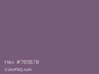 Hex #785b78 Color is a normal magenta color and the nearest color is Old Lavender #796878. Hex code #785b78 and RGB value is rgb(120,91,120). In RGB color space, this color is composed of 47% red, 36% green, 47% blue, In CMYK color space, this color is composed of 0% cyan, 24% magenta, 0% yellow , 53% black , In HSL color space, this color has a hue angle of 300° , 14% saturation and 41% lightness.