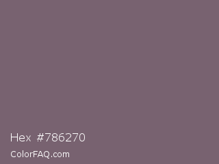 Hex #786270 Color is a normal magenta color and the nearest color is Falcon #7f626d. Hex code #786270 and RGB value is rgb(120,98,112). In RGB color space, this color is composed of 47% red, 38% green, 44% blue, In CMYK color space, this color is composed of 0% cyan, 18% magenta, 7% yellow , 53% black , In HSL color space, this color has a hue angle of 322° , 10% saturation and 43% lightness.