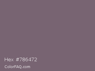 Hex #786472 Color is a normal magenta color and the nearest color is Old Lavender #796878. Hex code #786472 and RGB value is rgb(120,100,114). In RGB color space, this color is composed of 47% red, 39% green, 45% blue, In CMYK color space, this color is composed of 0% cyan, 17% magenta, 5% yellow , 53% black , In HSL color space, this color has a hue angle of 318° , 9% saturation and 43% lightness.