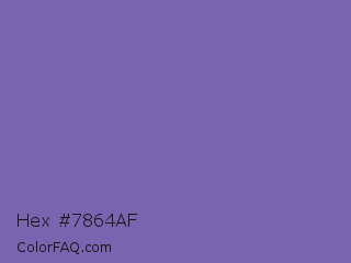 Hex #7864af Color is a normal indigo color and the nearest color is Deluge #7563a8. Hex code #7864af and RGB value is rgb(120,100,175). In RGB color space, this color is composed of 47% red, 39% green, 69% blue, In CMYK color space, this color is composed of 31% cyan, 43% magenta, 0% yellow , 31% black , In HSL color space, this color has a hue angle of 256° , 32% saturation and 54% lightness.