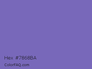 Hex #7868ba Color is a normal indigo color and the nearest color is Toolbox #746cc0. Hex code #7868ba and RGB value is rgb(120,104,186). In RGB color space, this color is composed of 47% red, 41% green, 73% blue, In CMYK color space, this color is composed of 35% cyan, 44% magenta, 0% yellow , 27% black , In HSL color space, this color has a hue angle of 252° , 37% saturation and 57% lightness.