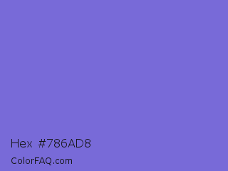 Hex #786ad8 Color is a light indigo color and the nearest color is Moody Blue #7f76d3. Hex code #786ad8 and RGB value is rgb(120,106,216). In RGB color space, this color is composed of 47% red, 42% green, 85% blue, In CMYK color space, this color is composed of 44% cyan, 51% magenta, 0% yellow , 15% black , In HSL color space, this color has a hue angle of 248° , 59% saturation and 63% lightness.