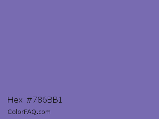 Hex #786bb1 Color is a normal indigo color and the nearest color is Deluge #7563a8. Hex code #786bb1 and RGB value is rgb(120,107,177). In RGB color space, this color is composed of 47% red, 42% green, 69% blue, In CMYK color space, this color is composed of 32% cyan, 40% magenta, 0% yellow , 31% black , In HSL color space, this color has a hue angle of 251° , 31% saturation and 56% lightness.