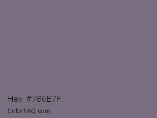 Hex #786e7f Color is a normal purple color and the nearest color is Fedora #796a78. Hex code #786e7f and RGB value is rgb(120,110,127). In RGB color space, this color is composed of 47% red, 43% green, 50% blue, In CMYK color space, this color is composed of 6% cyan, 13% magenta, 0% yellow , 50% black , In HSL color space, this color has a hue angle of 275° , 7% saturation and 46% lightness.