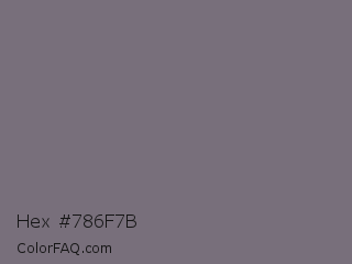 Hex #786f7b Color is a normal purple color and the nearest color is Fedora #796a78. Hex code #786f7b and RGB value is rgb(120,111,123). In RGB color space, this color is composed of 47% red, 44% green, 48% blue, In CMYK color space, this color is composed of 2% cyan, 10% magenta, 0% yellow , 52% black , In HSL color space, this color has a hue angle of 285° , 5% saturation and 46% lightness.