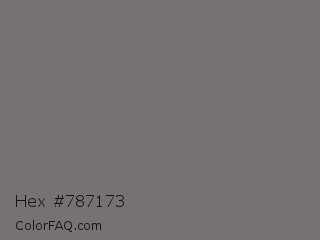 Hex #787173 Color is a normal rose color and the nearest color is Sonic Silver #757575. Hex code #787173 and RGB value is rgb(120,113,115). In RGB color space, this color is composed of 47% red, 44% green, 45% blue, In CMYK color space, this color is composed of 0% cyan, 6% magenta, 4% yellow , 53% black , In HSL color space, this color has a hue angle of 343° , 3% saturation and 46% lightness.
