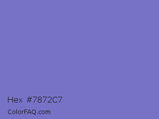 Hex #7872c7 Color is a light indigo color and the nearest color is Toolbox #746cc0. Hex code #7872c7 and RGB value is rgb(120,114,199). In RGB color space, this color is composed of 47% red, 45% green, 78% blue, In CMYK color space, this color is composed of 40% cyan, 43% magenta, 0% yellow , 22% black , In HSL color space, this color has a hue angle of 244° , 43% saturation and 61% lightness.