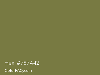 Hex #787a42 Color is a normal yellow color and the nearest color is Pesto #7c7631. Hex code #787a42 and RGB value is rgb(120,122,66). In RGB color space, this color is composed of 47% red, 48% green, 26% blue, In CMYK color space, this color is composed of 2% cyan, 0% magenta, 46% yellow , 52% black , In HSL color space, this color has a hue angle of 62° , 30% saturation and 37% lightness.
